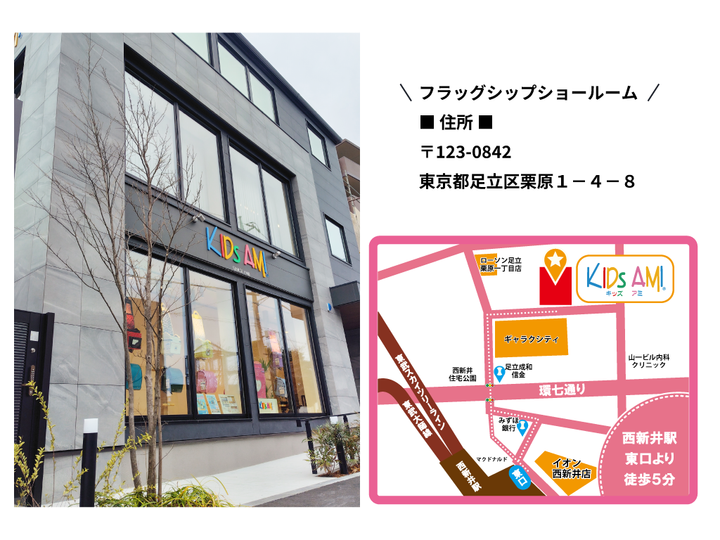フラッグシップショールームは、キッズアミの世界観を凝縮した「旗艦店」です。